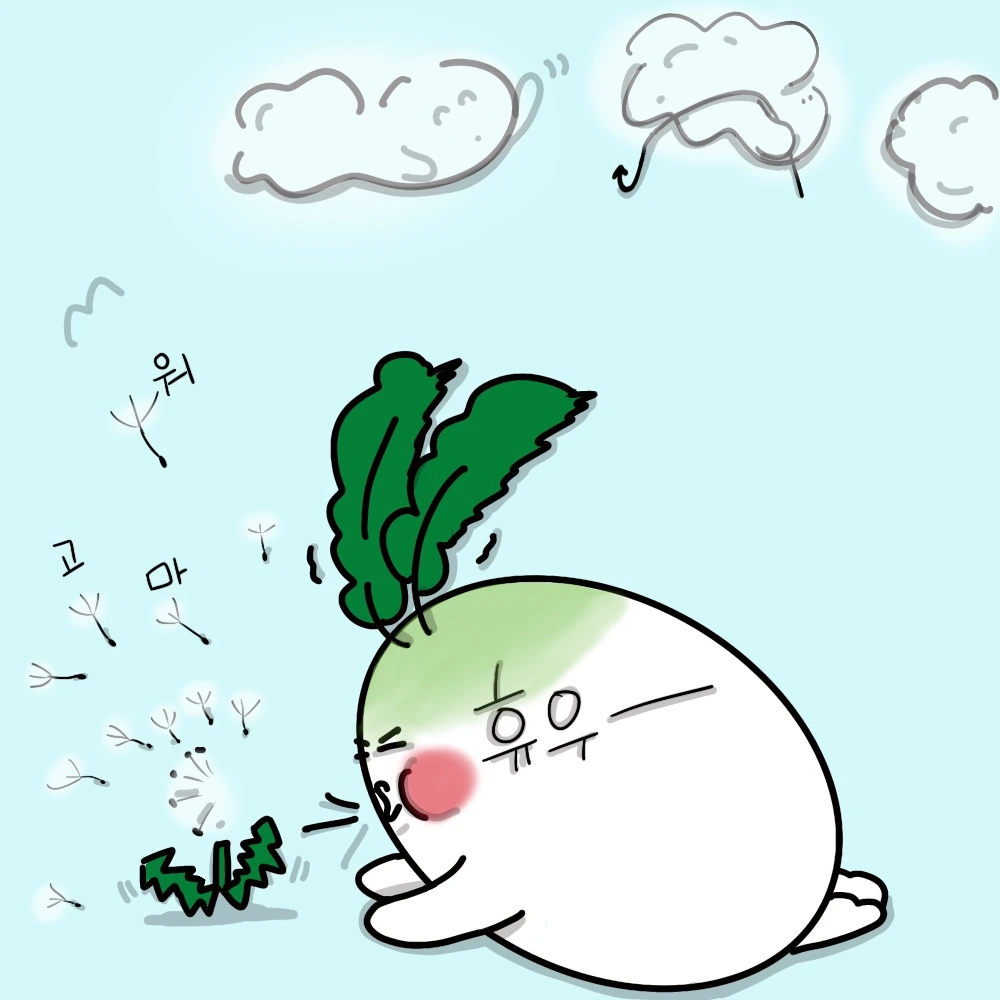 민들레 : “아이고 아깝게, 입바람이 하늘로 올라가 버리네.”