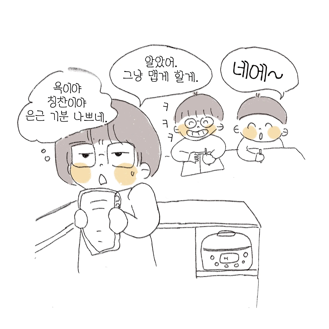 아들들 자꾸 이러면 대놓고 기분 나빠질지 몰라.