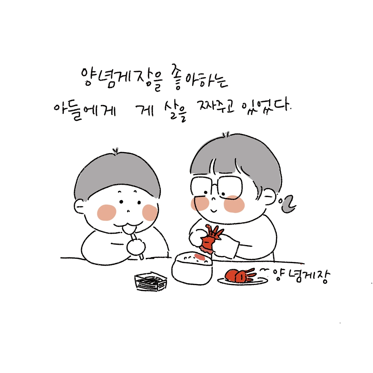 다음날 아들은 또 양념 게장에 밥 비벼 먹고 싶다고 했다.