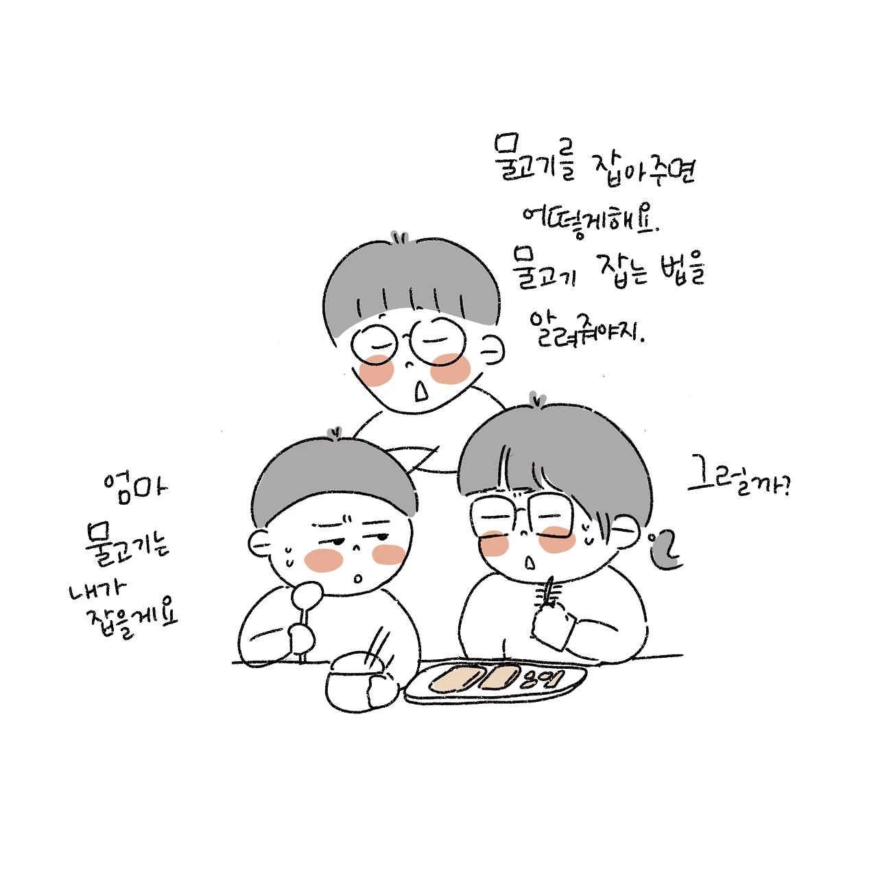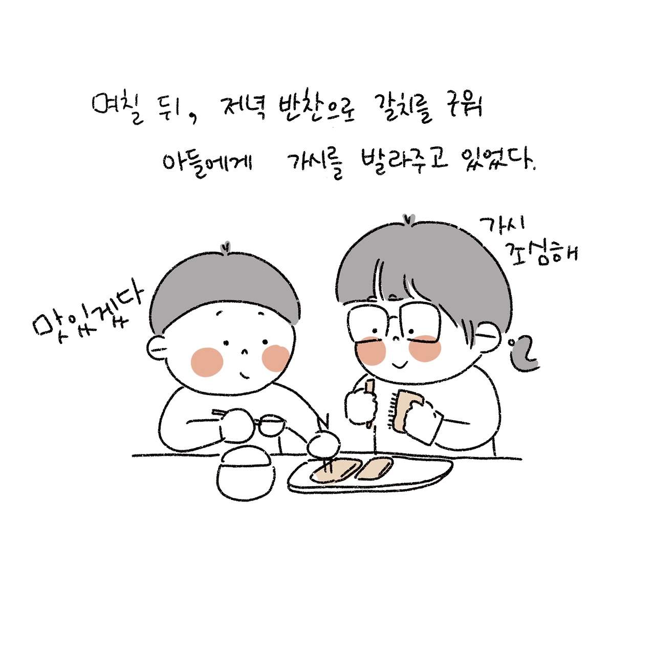 물고기 먹을 줄을 아는 아들이