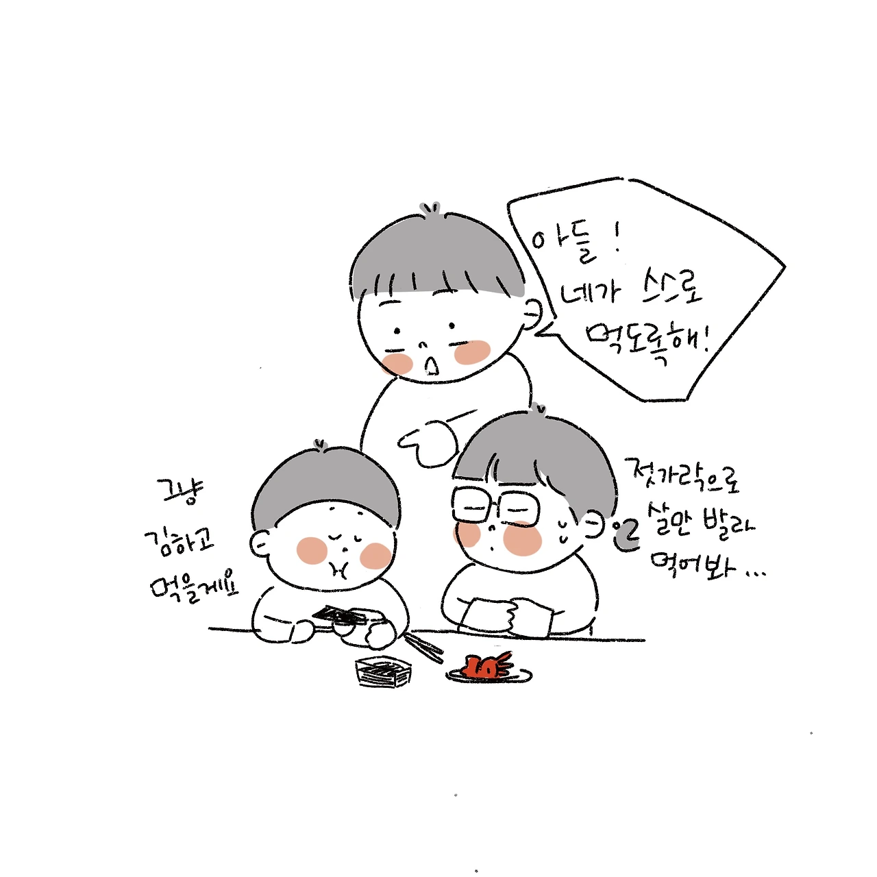 남편은 아들이 혼자 먹을 수 있게 알려줘야지