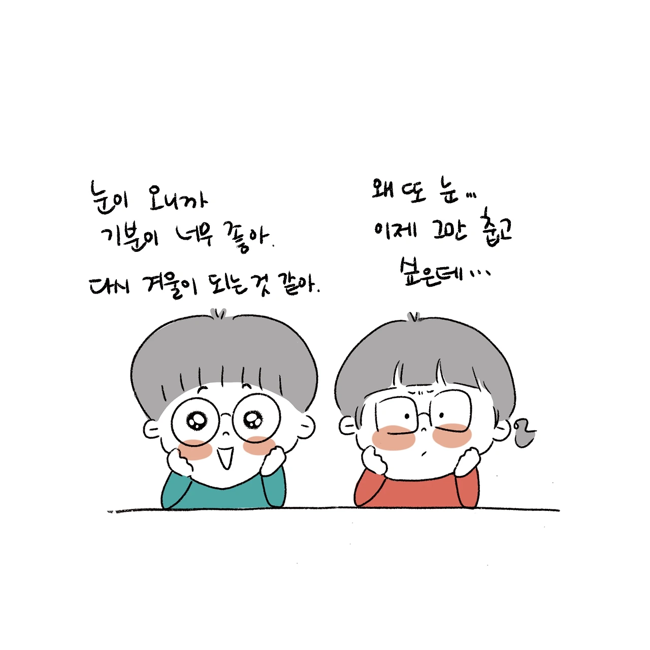 "눈은 그만 왔으면 좋겠다. 길 미끄럽고 다시 추워지는 거 싫어."