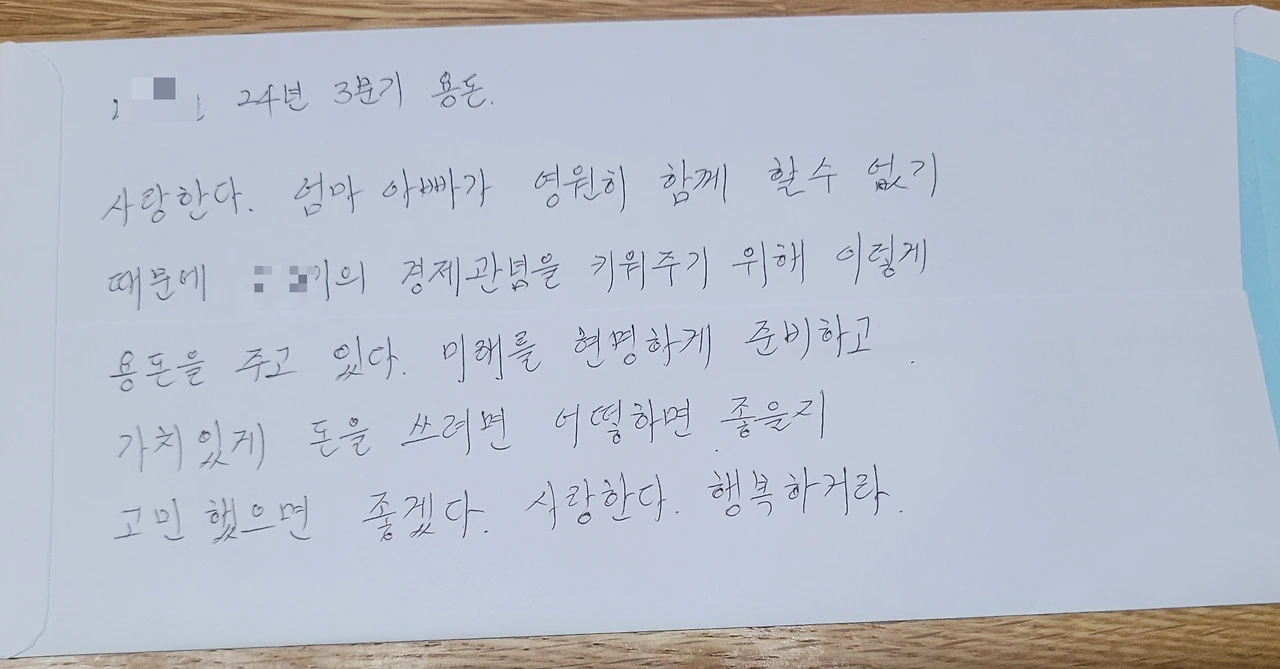 "에이, 그래도 용돈은 봉투로 주는 게 맛이지."