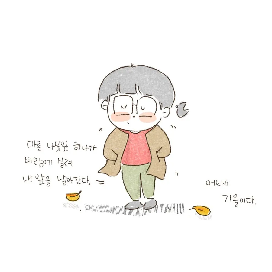 더위가 쉬이 가시지 않을 것 같더니지구는 쉬지않고 돌고, 돌고 있었다.마른 나뭇잎이 바람에 실려 내 앞을 난다.어느새 가을인 거다.낙엽은 드디어 자유를 얻은 양 몸이 닿는 곳에 자리를 펴고 어리마리 꾸벅인다.