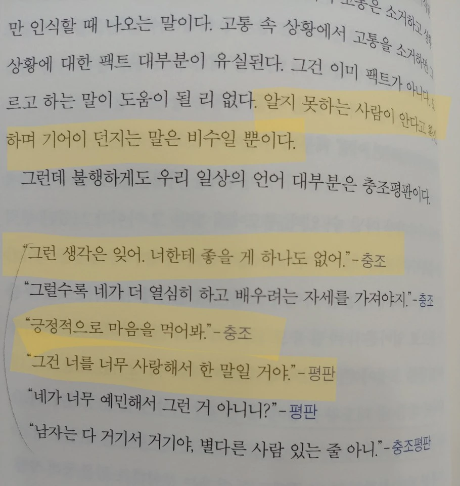 물론 아이들에게도 위로랍시고 이런 말들을 자주 했던 것에 반성한다.