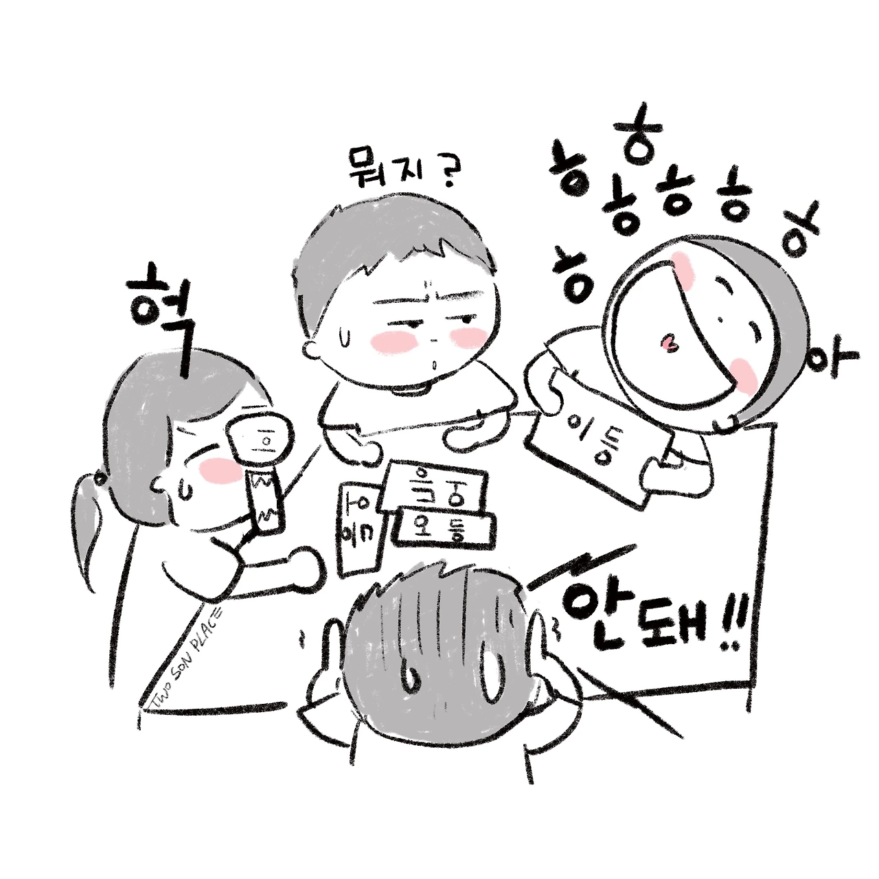 모두 종혁이를 향해 소리쳤다. 종혁이는 깜짝 놀라 그 자리에서 도망쳤다. 우린 서둘러 일을 끝내고 뽑기 판 앞에 섰다.