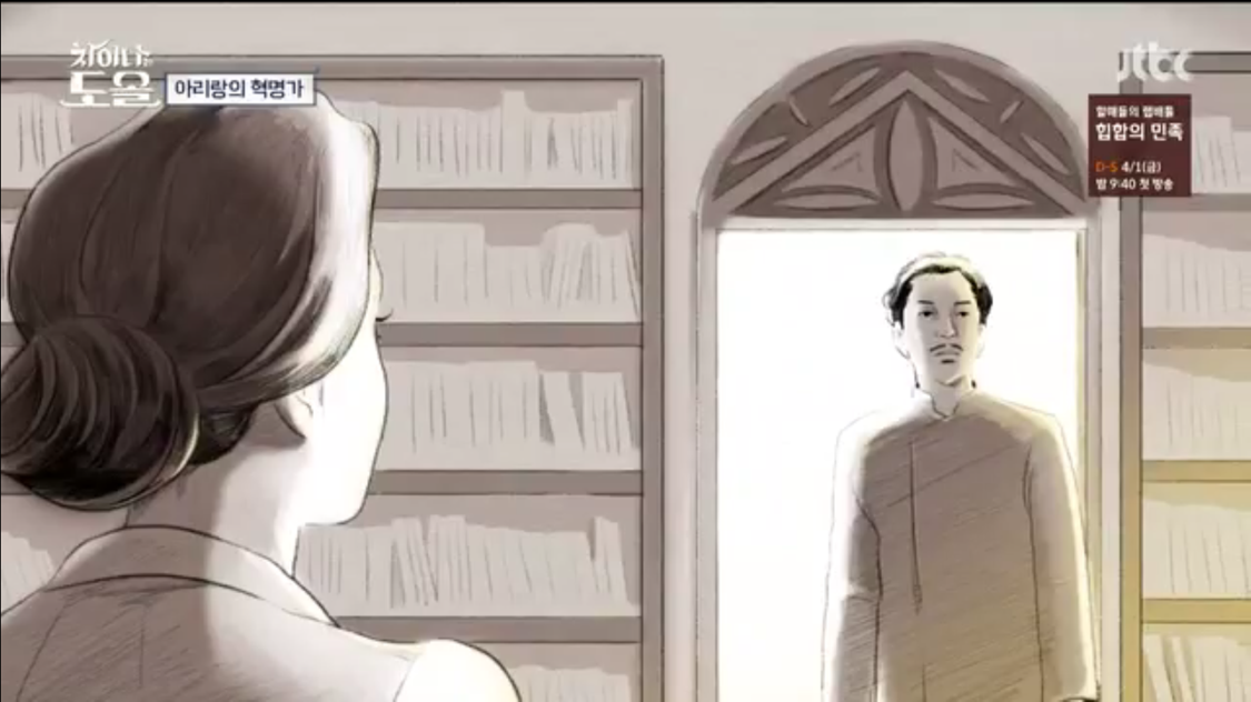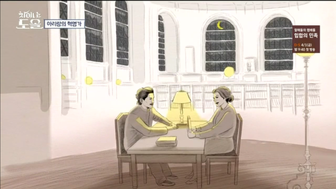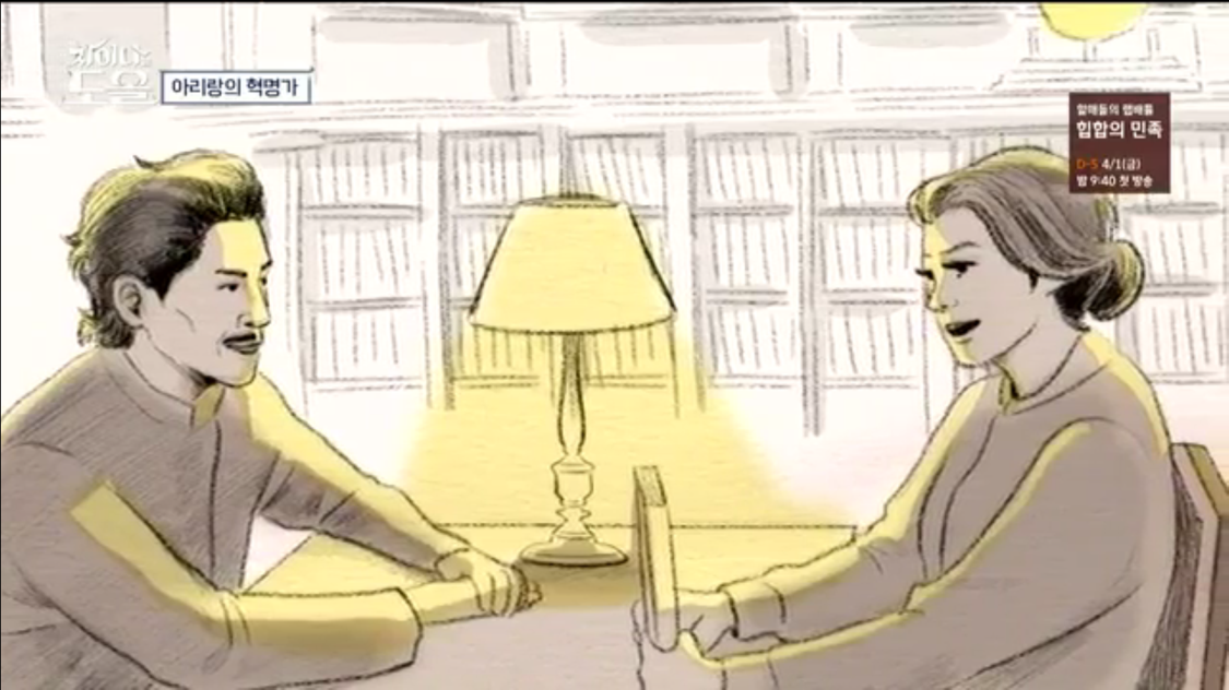 1937년 중국 공산혁명 취재차 연안 지역에 간 님 웨일즈는 중국 연안 루쉰 도서관에 책 빌리러 갔는데 자기가 빌릴려고 하는 책들을 족족 한 사람이 빌려간것이다. 편지를 써서 당신을 한번 만나고 싶다고 전했다.