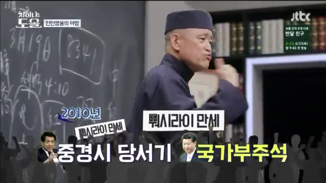 새까맣게 어린 얘로 봤던 시진핑이 국가 부주석이고 자기는 중경시 서기였다.