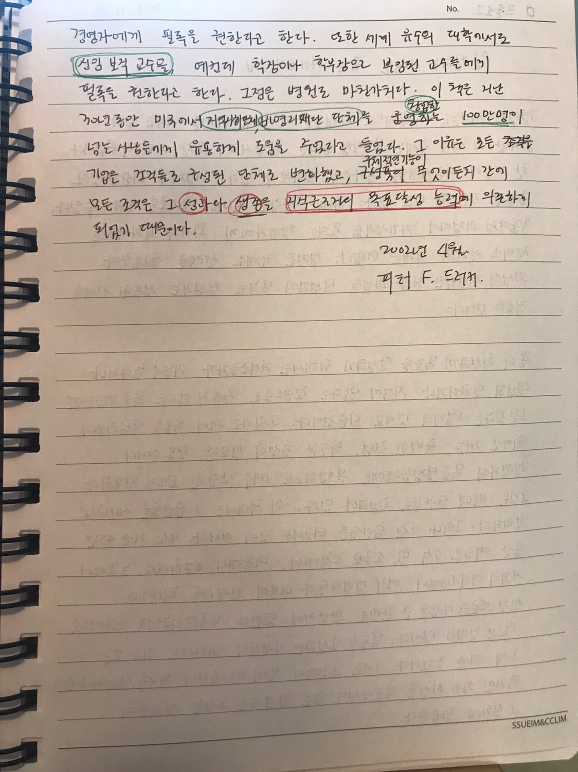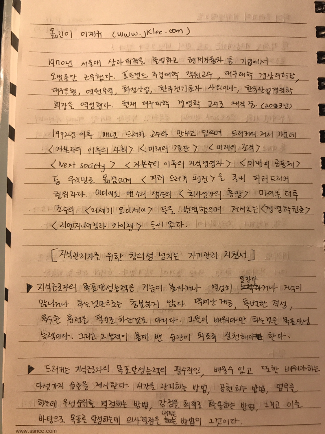 대기업, 유수의 대학의 신임 보직 교수들, 병원, 지역사회단체, 비영리재단 단체를 창업한 수만명의 사람들에게 유용하게 도움을 줄 수 있었던 이유는 모든 기업은 조직들로 구성된 단체로 변화했고 모든 조직은 그 성과와 생존을 지식근로자의 목표달성 능력에 의존하게 되었기 때문이다.