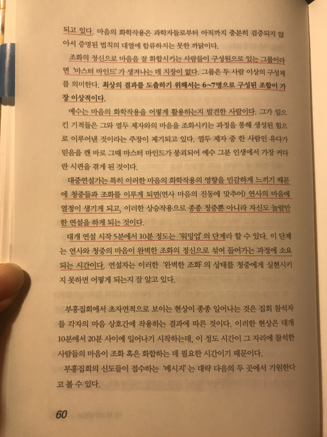 조화의 정신으로 마음을 잘 화합시키는 사람들이 구성원으로 있는 그룹이라면 마스터 마인드가 생겨나는 데 지장이 없다. 최상의 결과를 도출하기 위해서는 6-7명으로 구성된 조합이 가장 이상적이다.