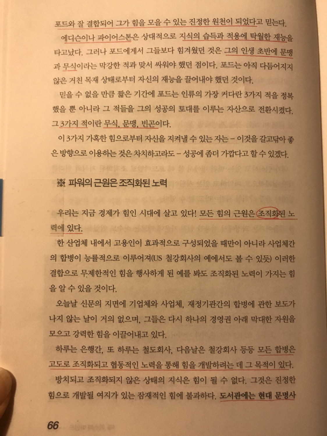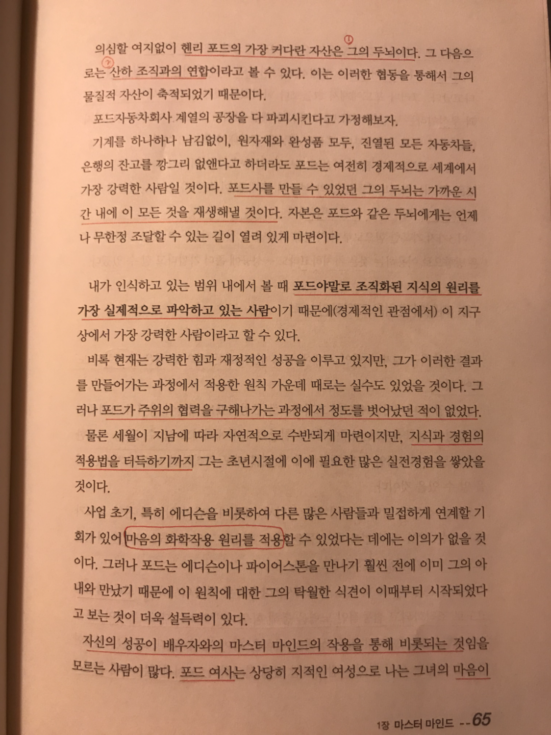 믿을 수 없을 만큼 짧은 기간에 포드는 인류의 가장 커다란 3가지 적을 정복했을 뿐만 아니라 그 적들을 그의 성공의 토대로 이루는 자산으로 전환시켰다. 그 3가지 적이란 무식, 문맹, 빈곤이다.