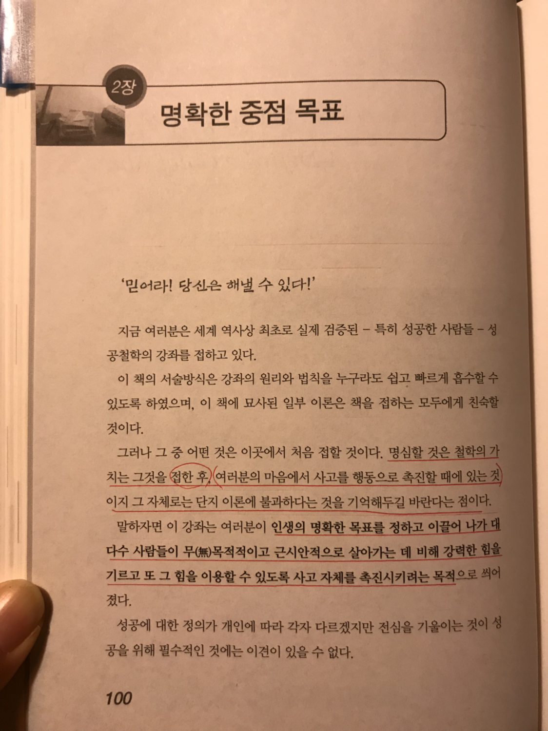 인생의 명확한 목표를 정하고 이끌어 나가 대다수 사람들이 무목적이고 근시안적으로 살아가는 데 비해 강력한 힘을 기르고 또 그 힘을 이용할 수 있도록 사고 자체를 촉진시키려는 목적으로 쒸어졌다.