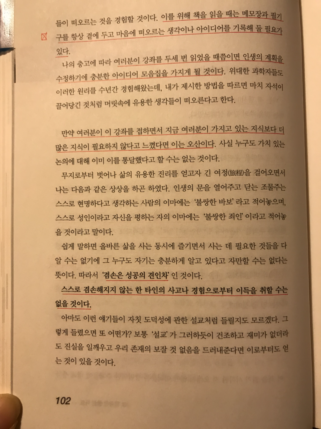여러분이 이 강좌를 두세 번 읽었을 때쯤이면 인생의 계획을 수정하기에 충분한 아이디어 모음집을 가지게 될 것이다. 이를 위해 책을 읽을 때는 메모장과 필기구를 항상 곁에 두고 마음에 떠오르는 생각이나 아이디어를 기록해 둘 필요가 있다.