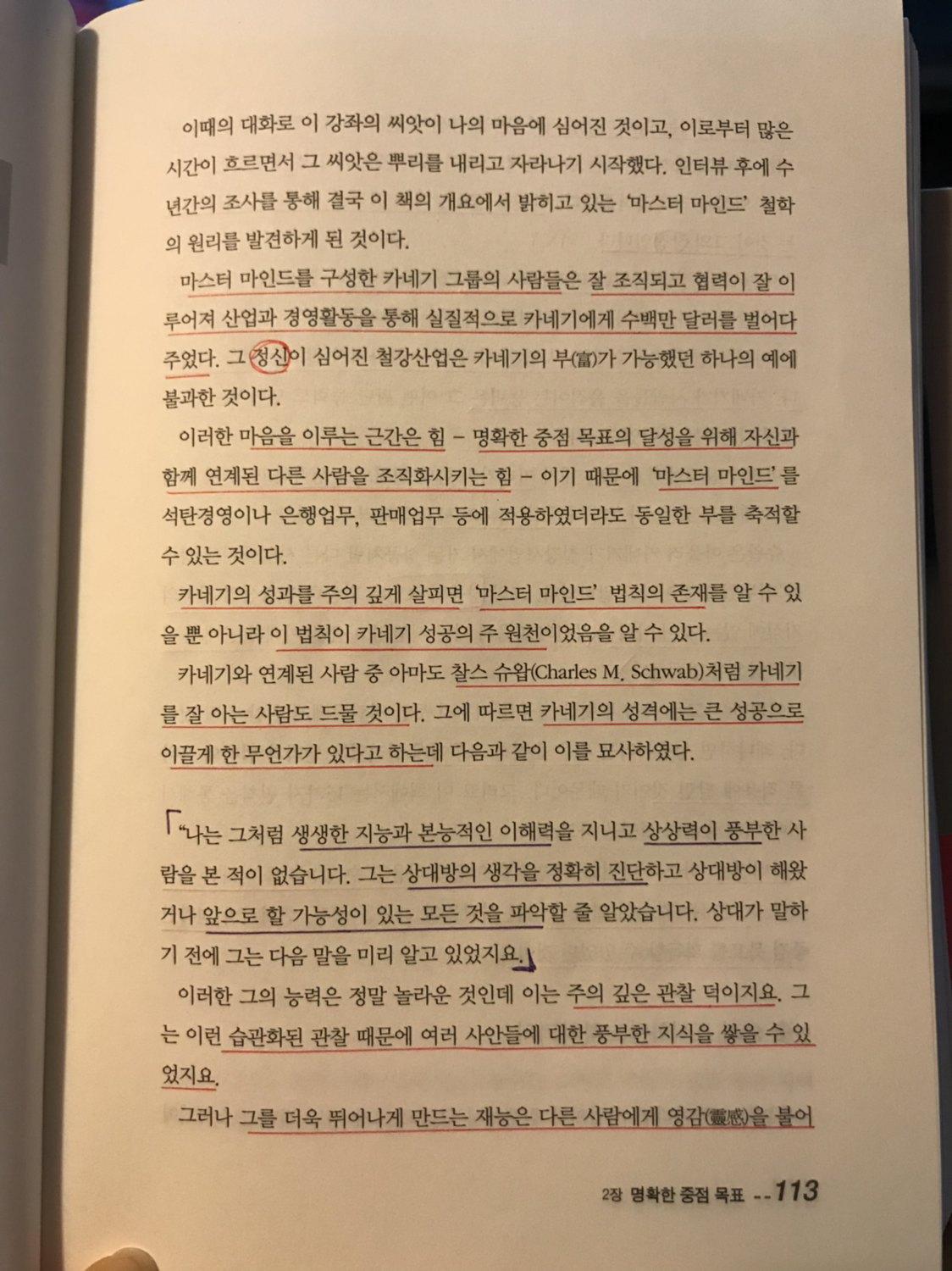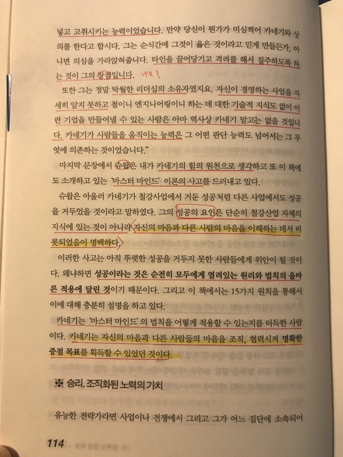 카네기는 자신의 마음과 다른 사람들의 마음을 조직, 협력시켜 명확한 목표를 획들할 수 있었던 것이다.