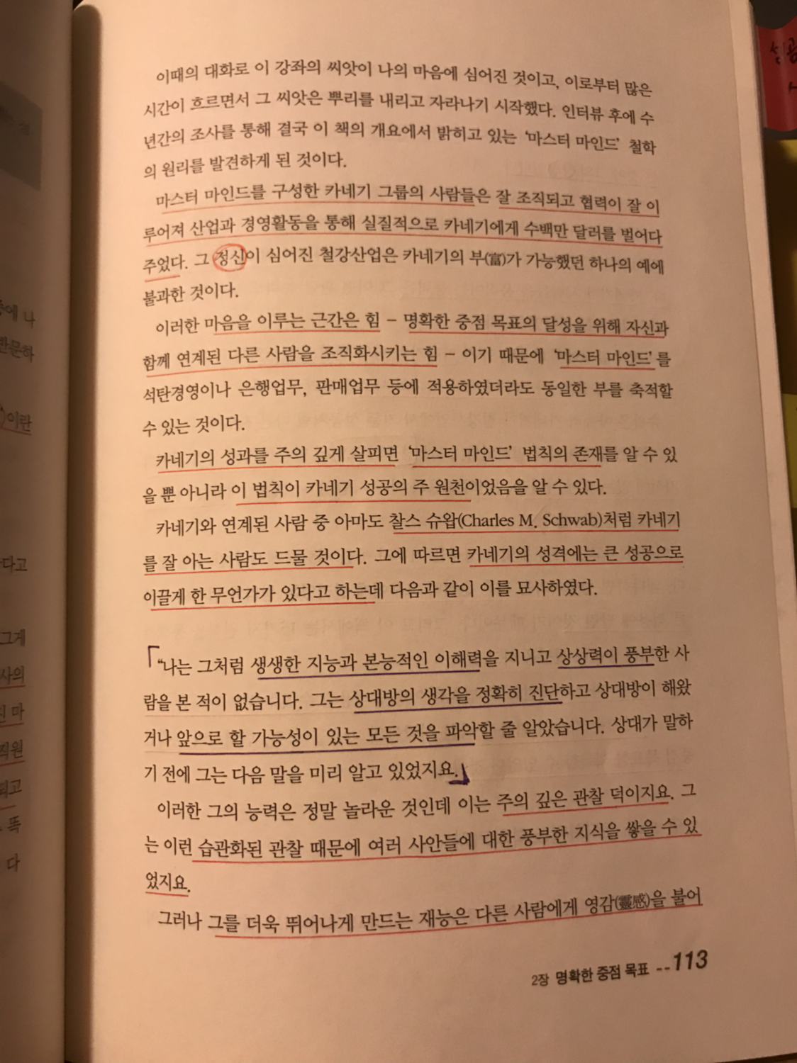 카네기는 자신의 마음과 다른 사람들의 마음을 조직, 협력시켜 명확한 중점 목표를 획득할 수 있었던 것이다.