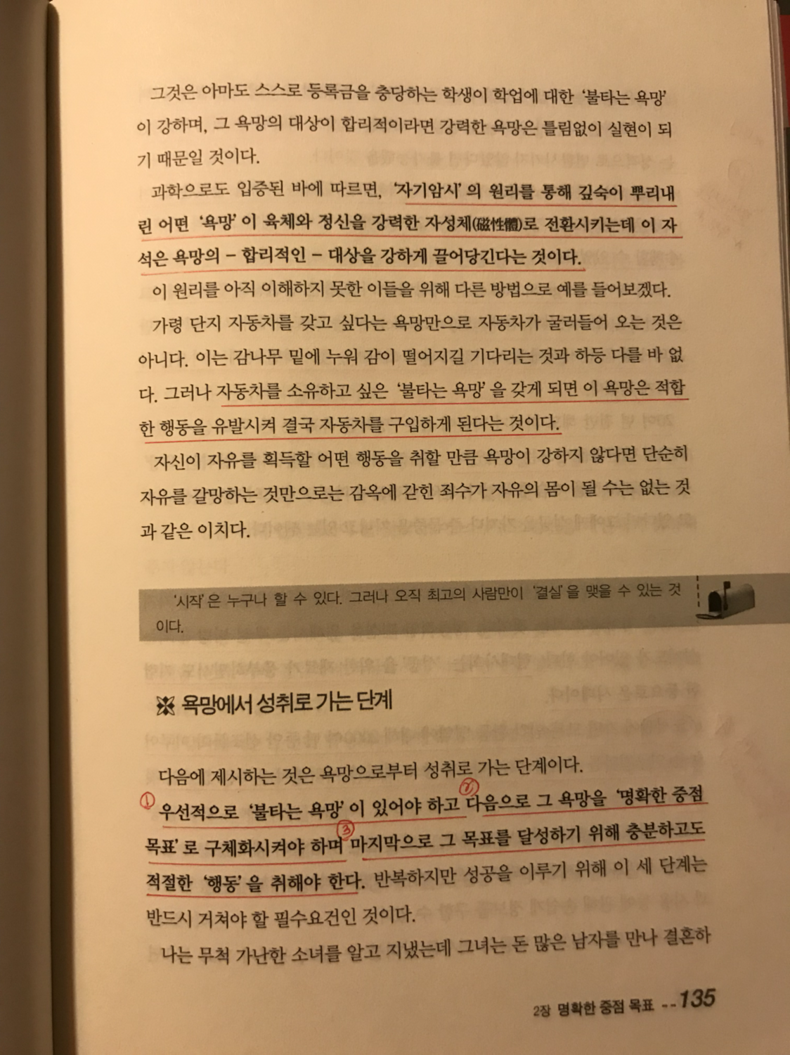 ‘불타는 욕망’으로 인생의 명확한 중점 목표가 뒷받침되어야 한다는 점이다.