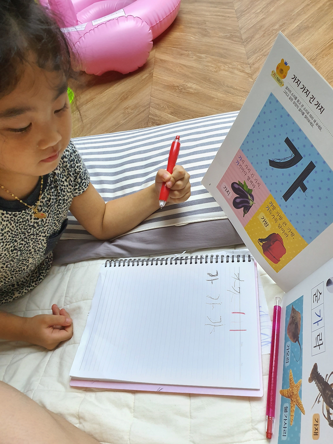 가나다 3개와 ABC 쓰기 연습합니다.