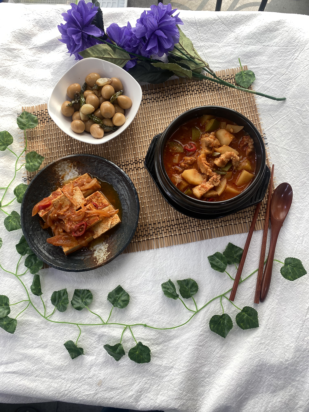 우리 요리학원은 쿠킹달력을 보고 원하는 요리가 있는 날의 수업을 미리 예약해 오는 시스템이다. 오늘의 요리는 ‘돼지고기고추장찌개’와 ‘메추리알장조림’, 그리고 ‘두부조림’. 오늘 강의실을 들어서자마자 내 눈을 사로잡았던 건, 머리가 희끗한 한 노부부가 열심히 선생님 설명을 듣고 있는 장면이었다.