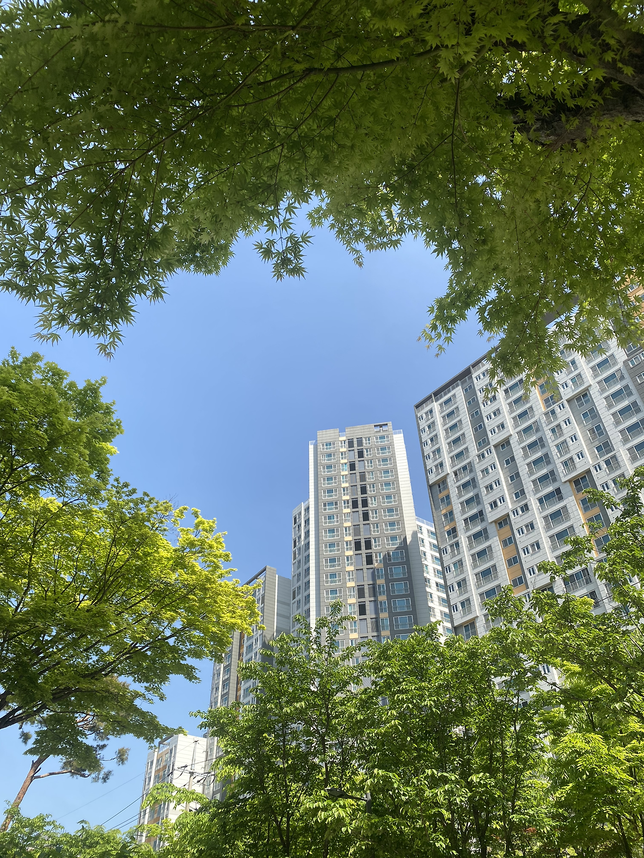 운동을 마치고 바로 옆 아파트 벤치에 잠시 앉았다. 파아란 하늘과 연둣빛 나무가 눈에 들어온다. 아~ 좋다, 생각하고 있던 찰나, 핸드폰에 알람이 울린다.