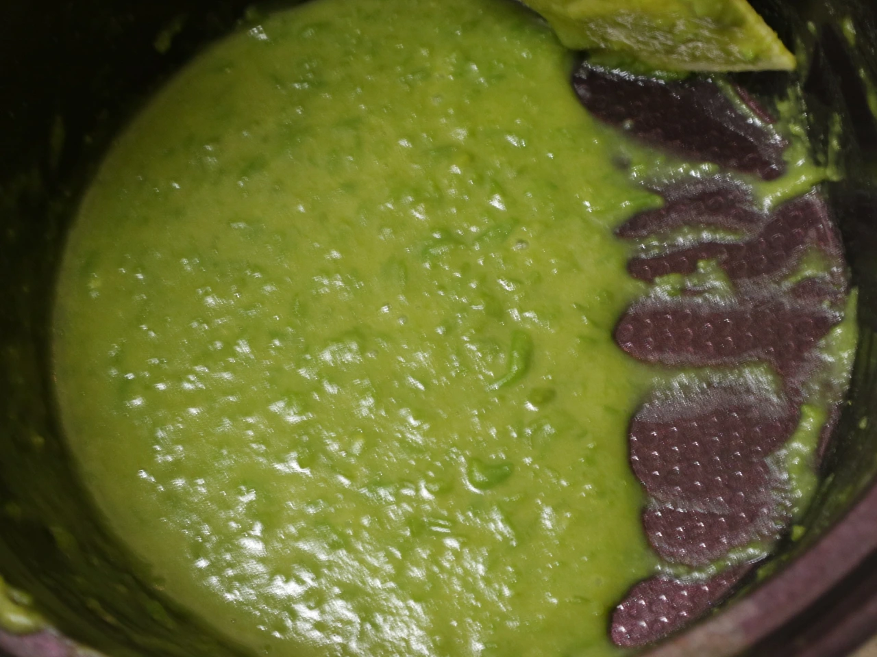 완두콩을 삶다보면 고소한 냄새가 올라오는 시점이 있다. 부드럽게 익어간다는 뜻이다. 한두 알 꺼내어 먹어본다. 입에서 삶은 감자처럼 부스스 으깨지면 불을 끈다. 완두콩과 동일한 양의 두유를 붓는다. (우유도 가능하다) 믹서기에 넣고 갈아준다. 완두의 식감을 느끼고 싶다면 아주 곱게 갈지 않아도 된다. 나는 완벽하게 정제되기 전의 재료가 좋다. 100% 정제된 맛과 식감에서는 뭐랄까 그 재료 본래의 모습을 찾기가 어렵다.