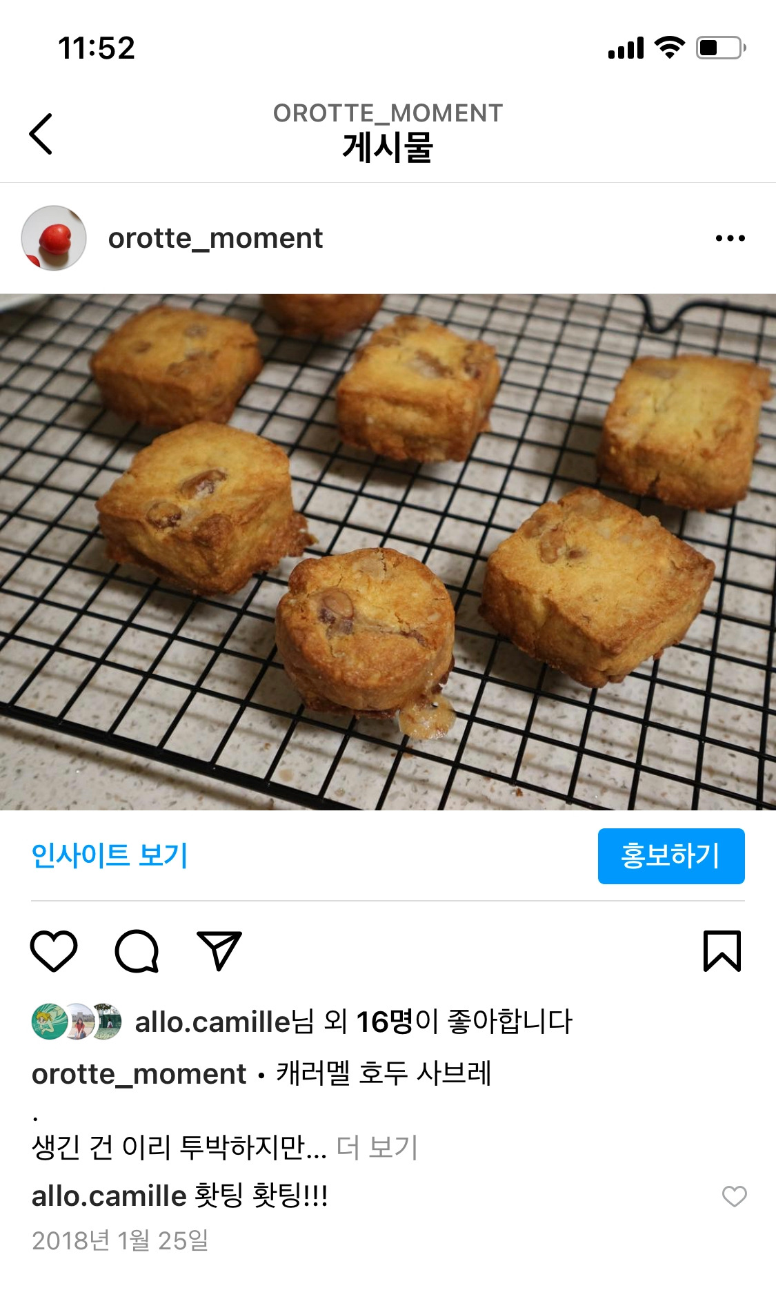 AI만 딥 러닝을 하는 것이 아니다. 우리도 반복적인 훈련을 통해서 성장한다. 아래의 사진 중 왼쪽은 2018년 1월에 올린 인스타그램 게시물이고, 오른쪽은 2021년 6월에 올린 게시물이다. 3년 동안 베이킹/사진/포스팅 노하우가 늘었다. 한 개의 게시물에 달리는 좋아요 수는 16명에서 100명으로 늘었고, 팔로워수는 백명 미만에서 천명이 넘었다.