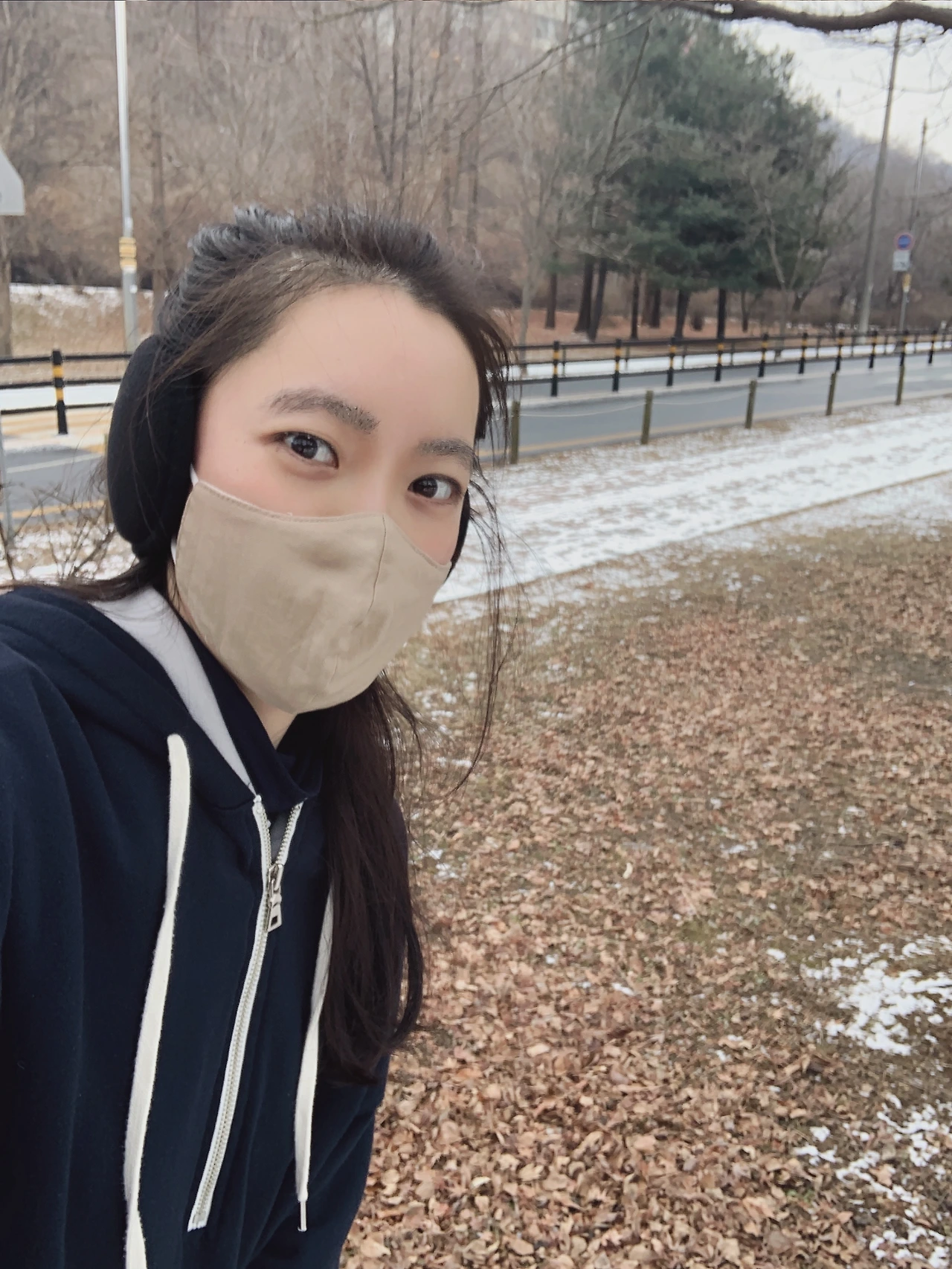 가쁜 숨을 내쉴 때마다 마스크 안에서 피어오른 더운 숨이 얼굴 위로 번졌다. 더운 숨은 수증기가 되어 눈썹 위에 작은 고드름이 되어버렸다. 그런 내 얼굴을 보고 나란히 뛰던 남편이 깔깔 웃었다.