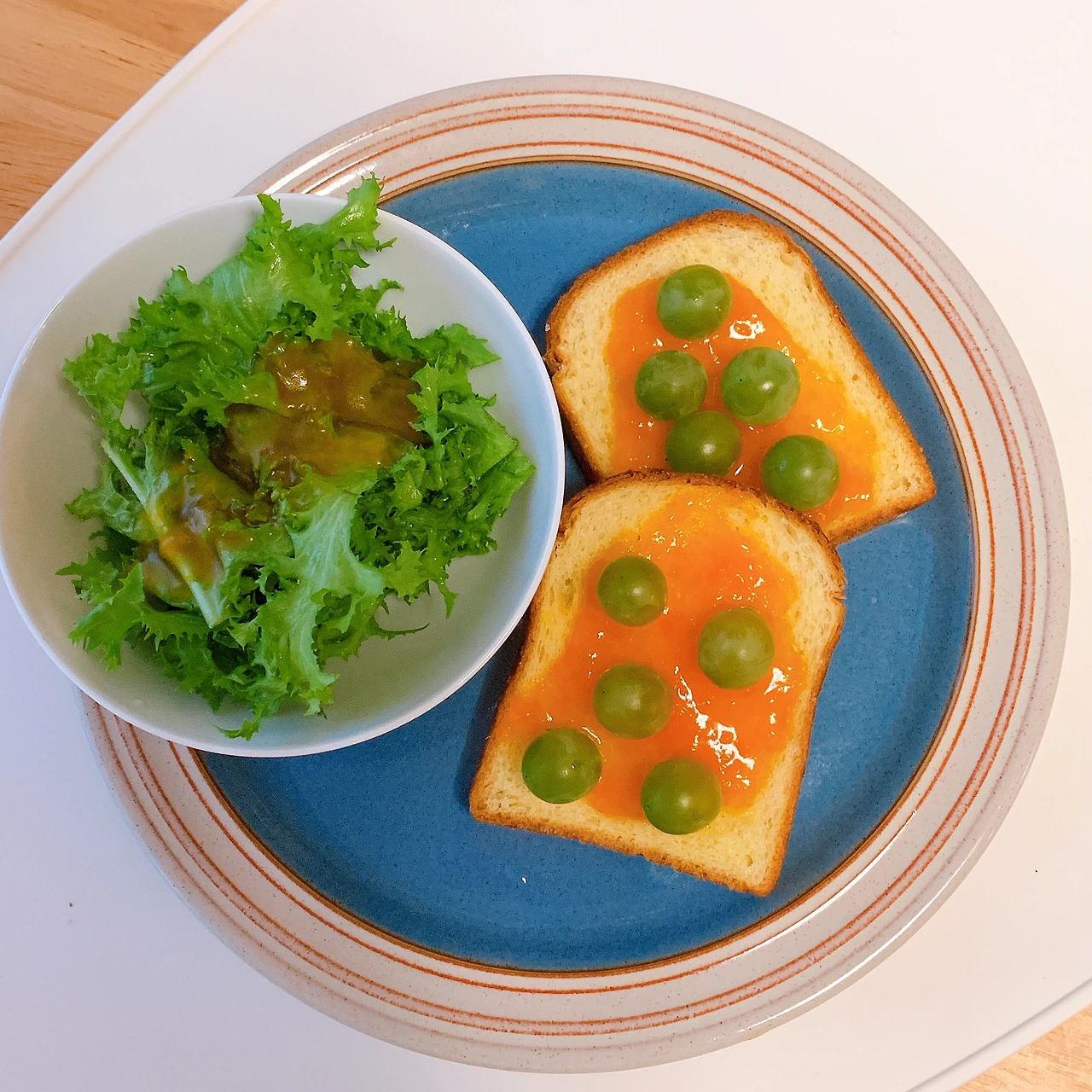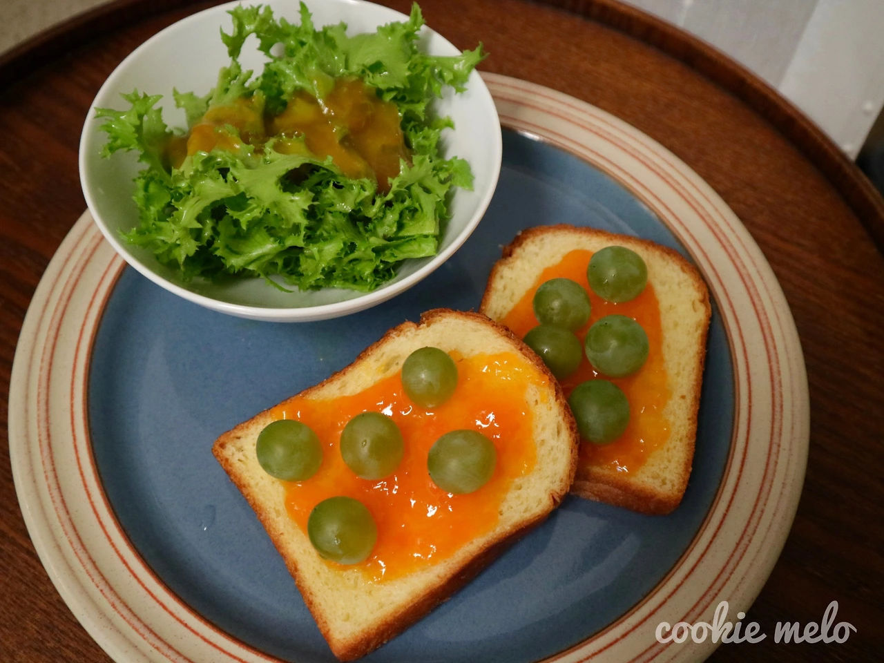 잼을 먹는 가장 기본적인 방법은 빵에 발라 먹는 것이다. 회사 근처 빵집에서 브리오슈 식빵을 샀다. 버터 함량이 높은 부드러운 브리오슈 식빵 위에 살구잼을 바르고, 그 위에 청포도를 얹었다. 살구와 청포도의 색감이 의외로 잘 어울린다. 설탕 함량을 높여서 만든 살구잼이라, 상쾌한 느낌의 재료와 함께 먹으면 좋겠다는 생각을 했는데 청포도와 궁합이 잘 맞았다.