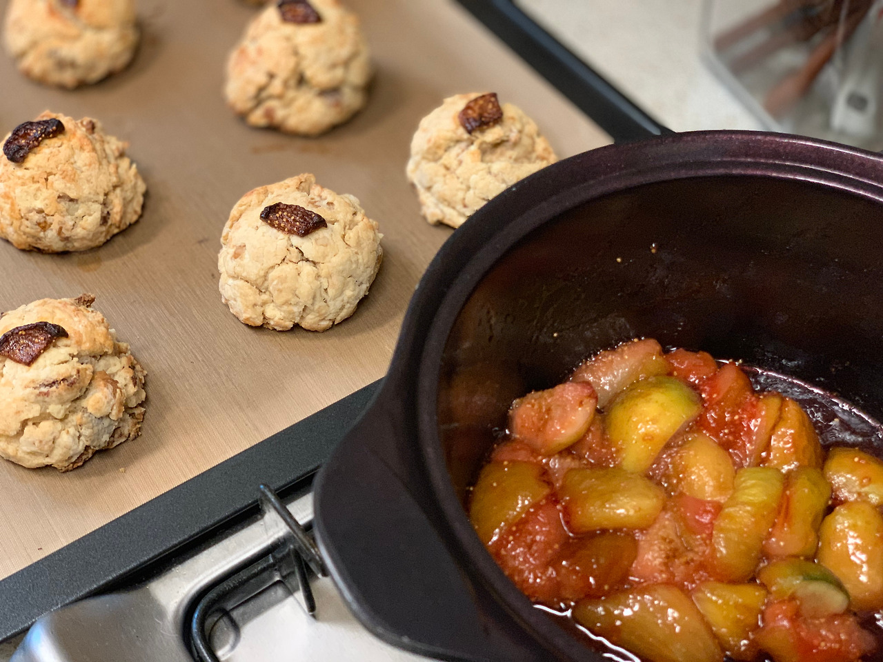 무화과 콩포트는 스콘과 잘 어울린다. 요즘 스콘 굽기에 푹 빠져있다. 생협에서 건조 무화과를 사다가 무화과 스콘을 굽기도 하고, 편의점에서 파는 파인애플로 파인애플 스콘을, 냉동 산딸기로 산딸기 스콘을 만들기도 했다. 어떤 스콘이던 무화과 콩포트는 잘 어울린다. 설탕 대신 소량의 메이플 시럽을 넣어서, 그리 달지 않은 맛도 좋다.