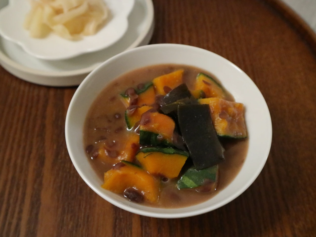 팥앙금과 두유를 섞어서 단팥죽을 만들었다. 불린 다시마와 함께 푹 끓여주었다. 단짠의 베이스 완성! 그리고 전자레인지에 찐 단호박을 잘라 넣었다. 이렇게 간단하고 이렇게 맛있을 수가!! 시원하고 아삭한 양배추 절임을 곁들었다. 균형이 잘 맞는 음식은 3가지의 맛과 3가지의 식감을 가지고 있다. 그 이상은 어수선하고, 그 이하는 심심하다. 부드러운 단맛의 단호박, 짭조름하고 찐득한 다시마, 아삭한 양배추.