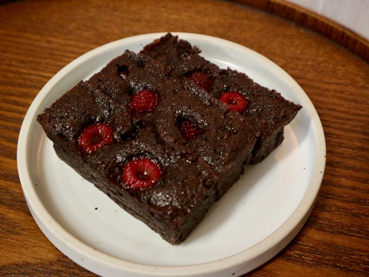 이 케이크는 지리산 앉은뱅이밀, 두부, 비정제 설탕, 럼 레이즌, 산딸기로 만들었다. 좋은 재료로 맛있는 디저트를 만들어 먹으면 꽤 괜찮은 사람이 된 것 같다. 정성스럽게 만든 건강한 음식을 먹는다는 건, 본능적인 행복이다.