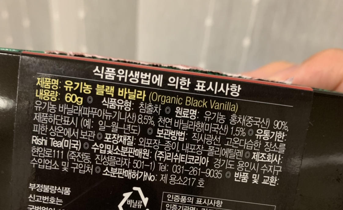바닐라 익스트랙을 만들고 나서부터, 날이 추워지면 바닐라 티가 생각난다. 마셔본 바닐라 티 중에서 가장 마음에 든 차는 리쉬티의 [블랙 바닐라]이다. 홍차에 바닐라향을 가향했다. 리쉬티는 유기농 찻잎과 유기농 부재료들을 사용한다.