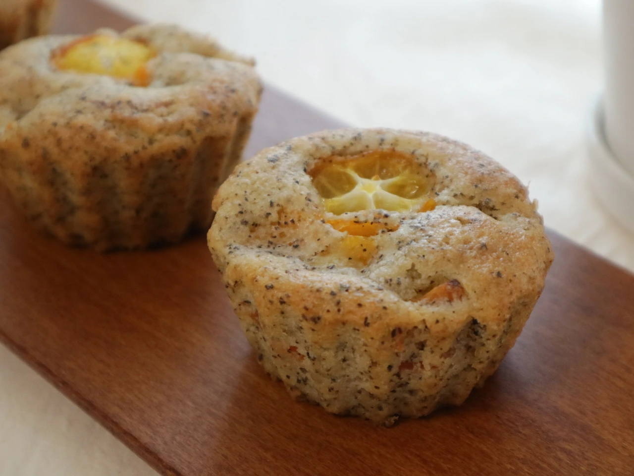 얼그레이 티백 한 개를 뜯어 넣고, 앉은뱅이 토종 밀가루, 두유, 금귤 조각, 말린 금귤 슬라이스와 함께 머핀을 구웠다. 바로 먹으니 바삭한 겉면과 촉촉한 속 반죽의 식감, 금귤의 상큼하면서도 단맛이 잘 표현되어 화사한 봄 디저트의 느낌이 났다. 그 자리에서 한 개를 후다닥 먹고, 머핀 위에 유자청 글레이즈를 뿌려두었다가 하루 냉장 숙성해서 먹었다. 수분감 있는 머핀은 냉장 숙성해서 먹으면 더 맛있다.