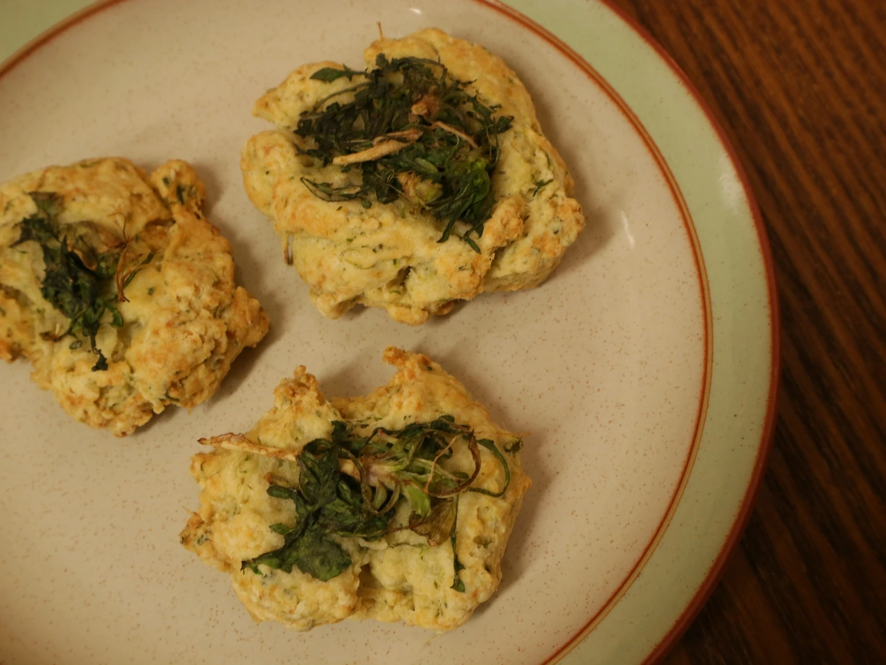 냉이 스콘은 분명 디저트인데 밥을 먹는 기분이다. 스콘 반죽 안에 냉이 다진 것을 넣고 반죽한 후에, 반죽을 손으로 뚝뚝 끊어서 자연스럽게 모양을 잡았다. 그 위에 다진 냉이를 조금 올리고 구웠다. 냉이를 올려 구워도 보고 올리지 않고 구워도 봤는데, 확실히 냉이를 올리면 반찬 느낌이다. 오묘한 매력이라, 먹으면서 혼자 풉- 하고 웃었다. 신기한 맛이야, 풉-