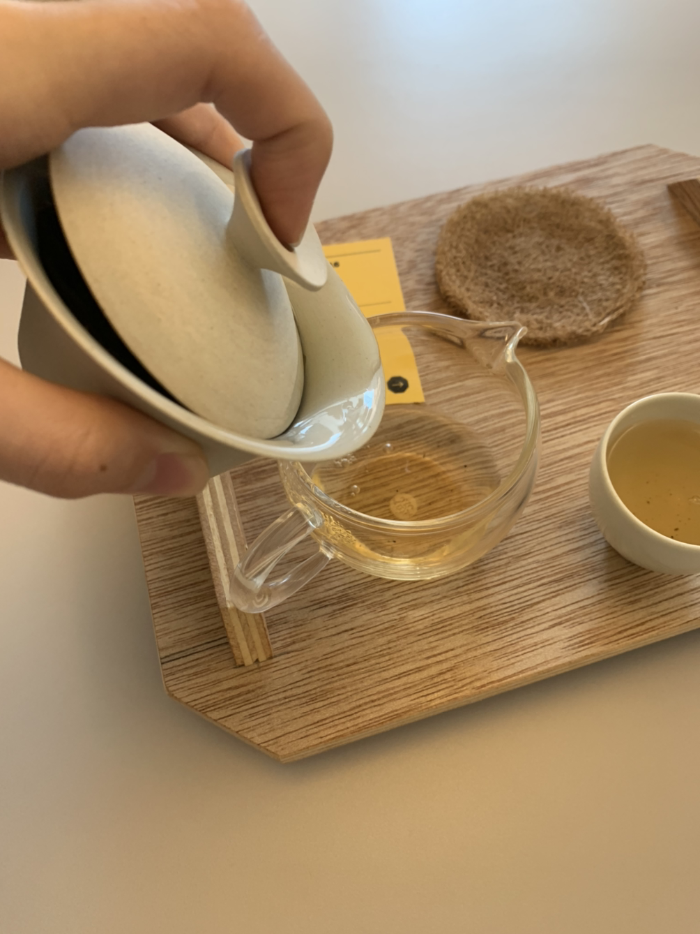 쇼룸 매니저의 추천을 듣고 보이생차를 마셔보기로 했다. 2016년 대설산 보이생차. 복숭아 향이 나는 가볍고 달콤한 차다. 진하게 달다기보다는 상쾌하게 달다. 차의 향기를 깊은 숨으로 들이마신다. 통 통 통 과일 젤리가 튀어 가는 느낌이다. 좋다. 나오길 잘했다.