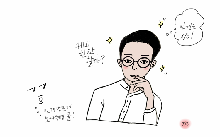그리고 안경을 쓴 남자에 대한 로망이 있었던 것 같다. 기본적으로 내가 안경이 참 잘 어울리는 남자들과 연애했다는 사실을 미루어보면 답은 뻔하다. 안경을 통해 좀 더 날카롭고 이지적으로 보이는 경우도 있고 반면 순진하고 순수해보이는 모습도 있기 때문이다. 단순히 얼굴에 무엇을 하나 얹어 놓았을 뿐인데 이미지는 달라진다. 그렇게 다른 이미지를 가질 수 있고 벗어도 멋있고 써도 멋있는 얼굴을 좋아한다. 이야기를 종합해보면 결국 잘생긴 사람이어야 한다는 말이 될 수도 있겠지만.