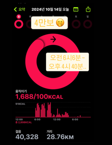 나중에는 내 다리가 말을 듣지 않아 발이 마음대로 움직였다. 스틱은 목발이 되었고 다 내려와 밟는 아스팔트 땅이 얼마나 고마웠던지 모르겠다. 힘들긴 했지만 다치지 않고 무사히 완주하게 되어 다행이었다. 그날의 기록은 남기지 않을 수가 없었다.