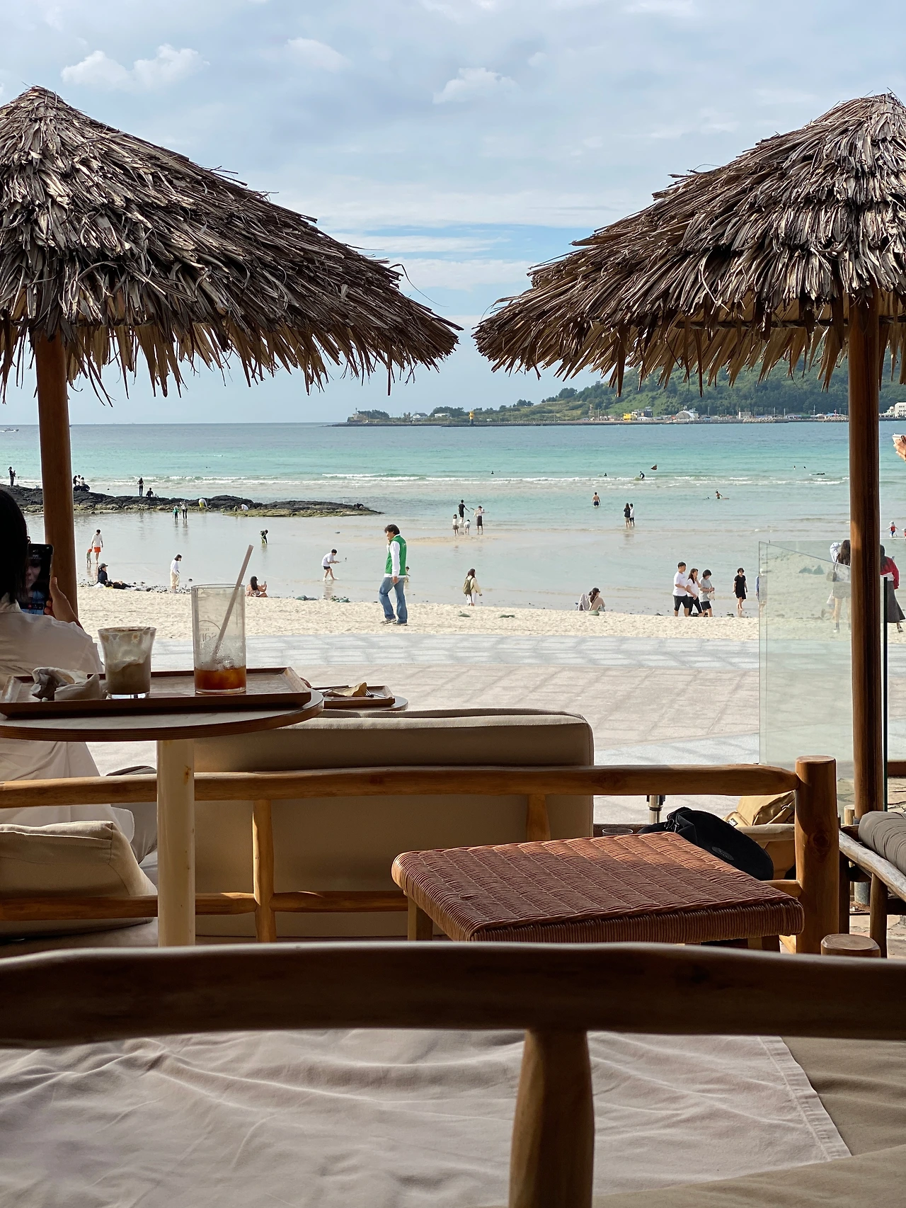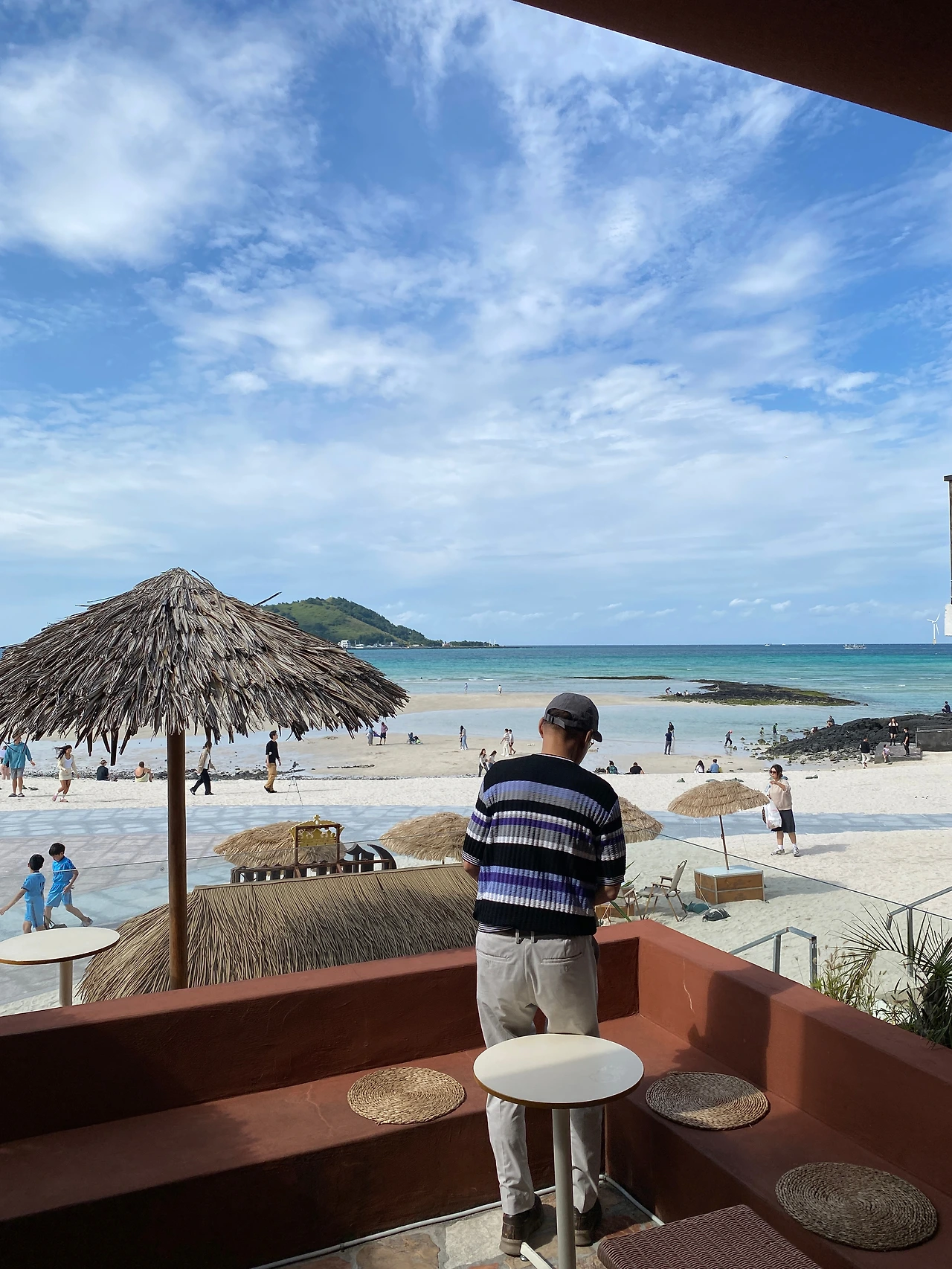 첫날인 일요일에는 협재해수욕장 앞 카페에서 느긋하게 쉬고 저녁에는 장위동 유성집 제주점에 가서 소고기로 단백질을 채웠다. 협재해수욕장은 여전히 참 예뻤다. 제주의 모든 해수욕장을 다녀본 건 아니지만.. 예쁜 색감의 물결을 바라보는 것만으로도 마음이 한결 가볍고 시원해졌다. 아빠는 바다보다 휴대폰 속 야구경기를 더 많이 보셨지만 이곳, 여기, 제주에 함께 와 있는 것만으로도 특별한 추억을 공유하고 있는 것은 틀림이 없었다.