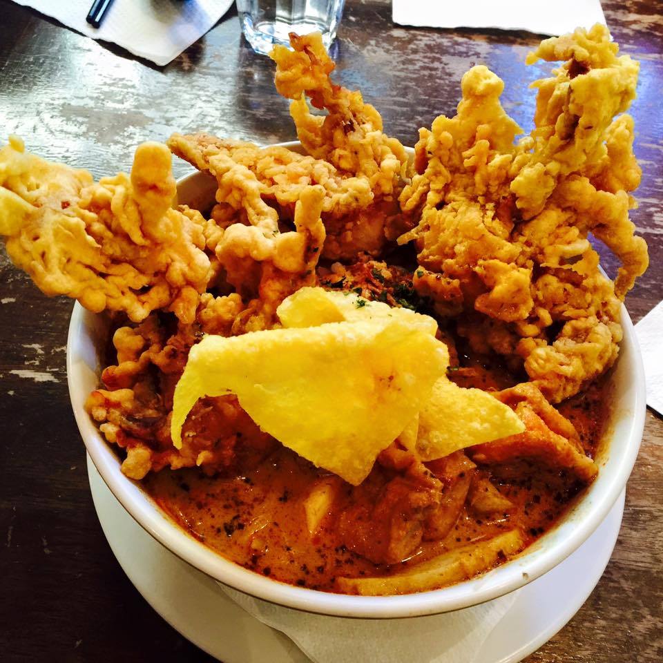 거의 첫 데이트 때, 우리는 락사를 먹으러 갔다.