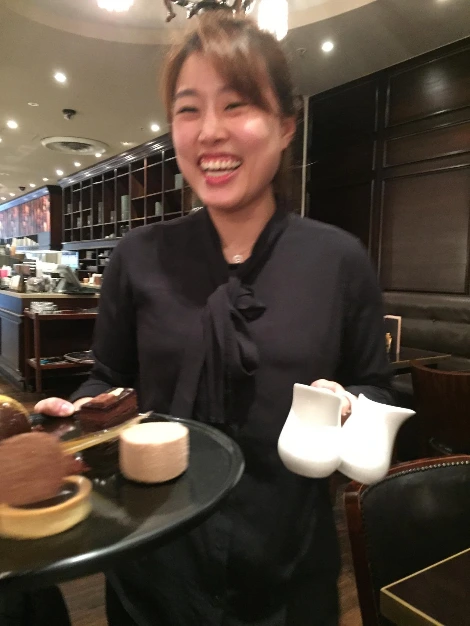 손님: "너 어디에서 왔어? 영어 잘하네?"