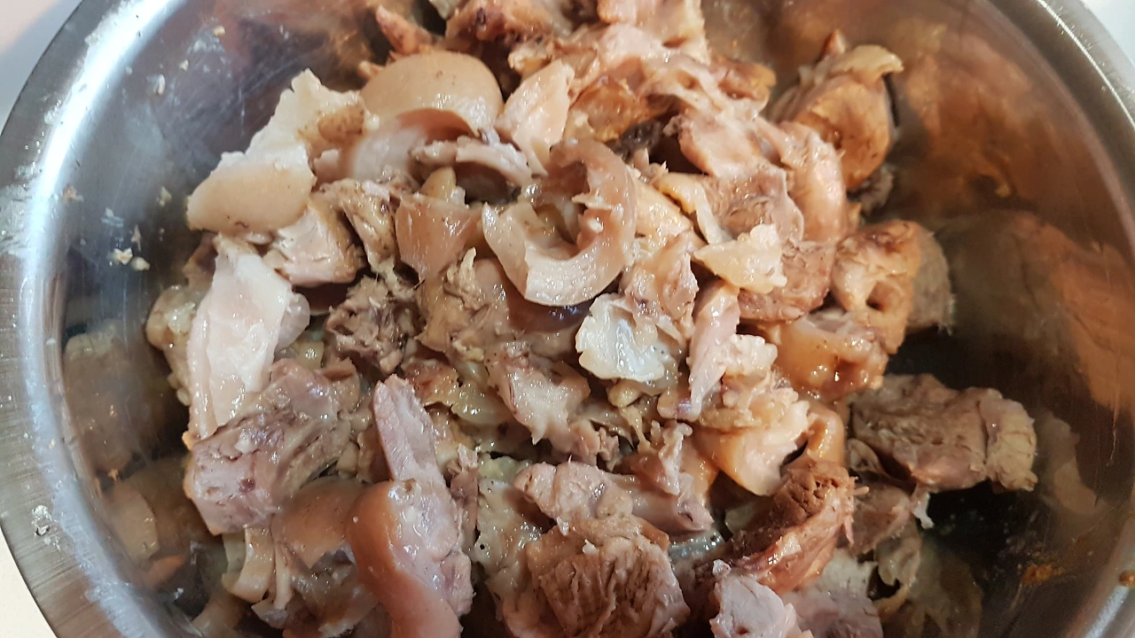 고기가 익었다 싶으면 뼈와 고기를 분리한다.(사진을 실패)