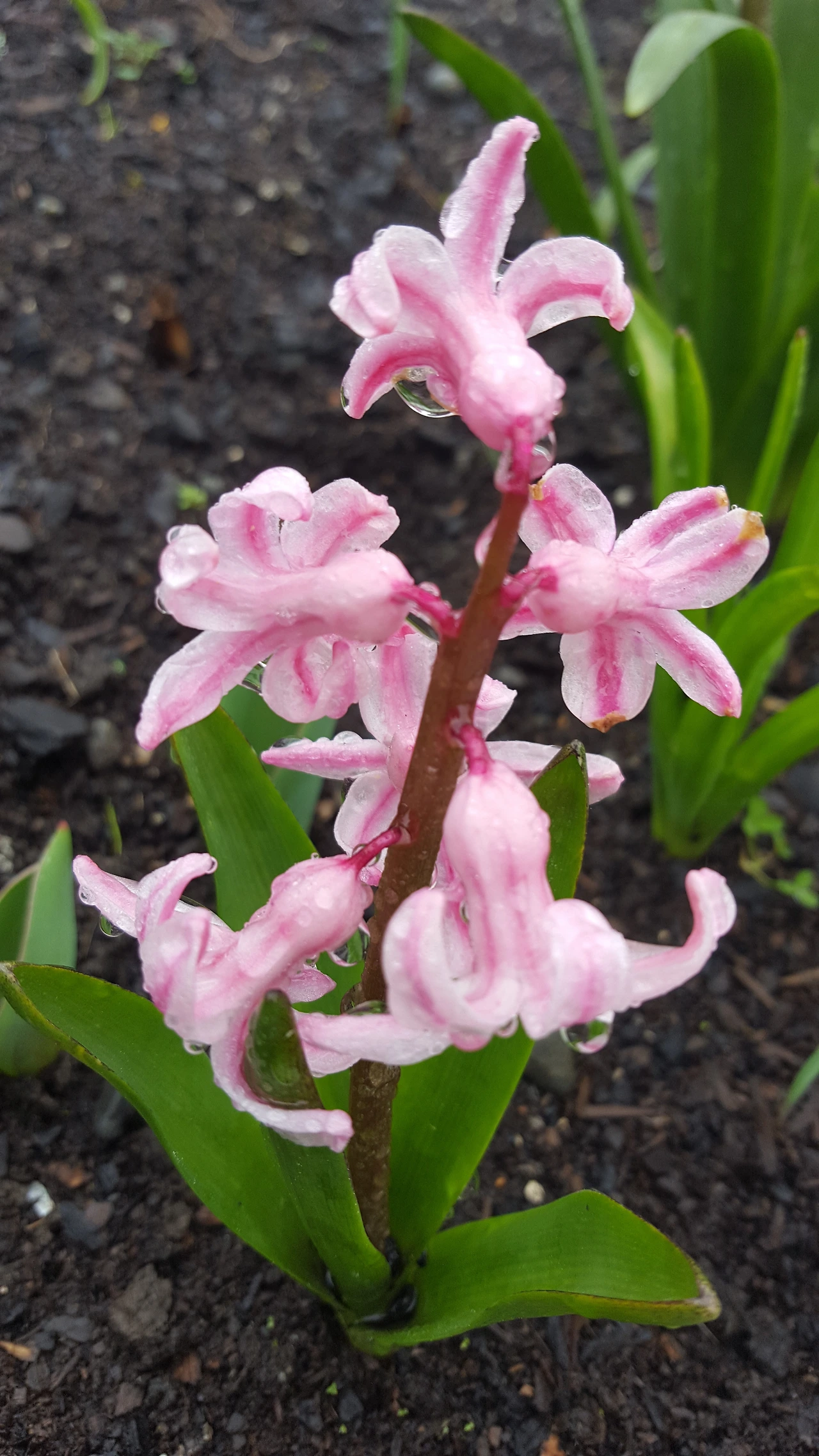 히야신스.... 한국에서는 수경재배로 키운다는 얘기를 들었다. 여기서는 집집마다 좀 흔한 편이다. 이사 와서 한송이가 피었는데 그 꽃이 지기를 기다렸다가 옮겨 심었다. 5년이 지났더니 그새 여럿이 되었다.