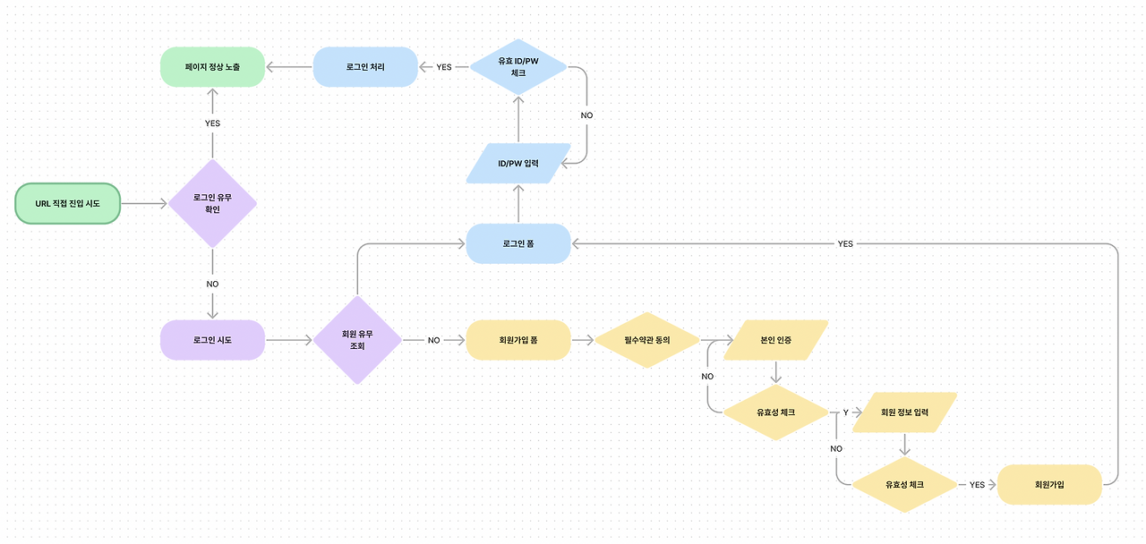 회원로그인 상태, 비로그인 상태, 비회원 진입 등의 유즈케이스별 플로우를 미리 설계해 놓아야 오류로 연결되지 않고 이탈율도 줄일 수 있음