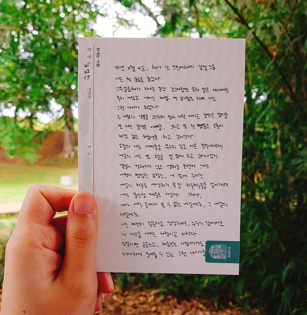지난 가을 담양 여행에서 나에게 보내는 엽서에 썼던 글