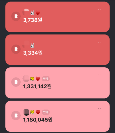 매일 자동이체 되는 적금이야 어느 은행에든 설정만 하면 가능하겠지만 굳이 굳이 카카오뱅크로 모으는 이유는 1) 귀엽고 2) 편하다 는 것. 적금 계좌를 구분하는 이름과 색상을 내 마음대로 바꿀 수 있다. 나는 이름+올해의 십이지 동물+하트 를 붙여서 구분하고 있다. 별거 아닌데 귀여워..T.T