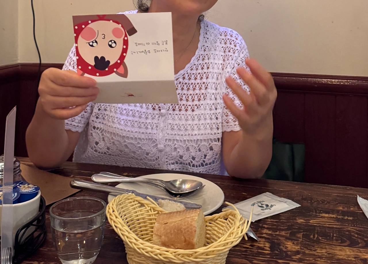 시간이 흐르니 나도 결혼을 하고 아이를 갖게 되어, 이제 엄마를 맘껏 기쁘게 해 줄 수 있는 입장이 되었다. 최근에 임신 7주 차에 들어서고 나서는, 부모님들을 위해서 요즘 유행한다는 '임신 서프라이즈 카드'라는 걸 구매했다. 임신 서프라이즈 카드란, 귀여운 아기 캐릭터가 그려진 종이 카드를 열면 초음파 사진을 붙이는 공간이 있어서 보는 사람을 놀라게 해주는 카드다. 유치한 걸 알면서도 부모님들이 얼마나 좋아하실지 궁금해 임신 소식을 이 카드로 알리기로 했다.