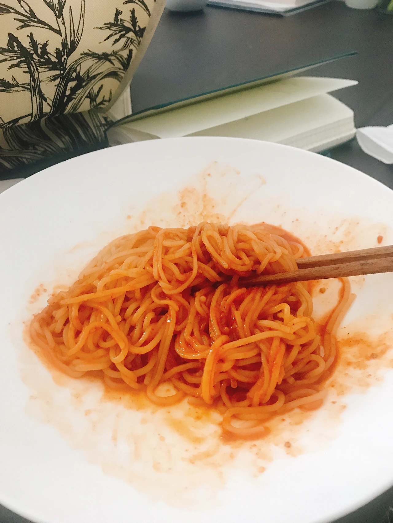 아, 마지막으로 쫄면을 해 먹었다. 장 본지 오래되어 먹을 게 없다며 이거라도 꼭 먹고 가라는 사수를 위해 먹었다. 의외로 맛있어서 나도 쟁여야지 싶었다.