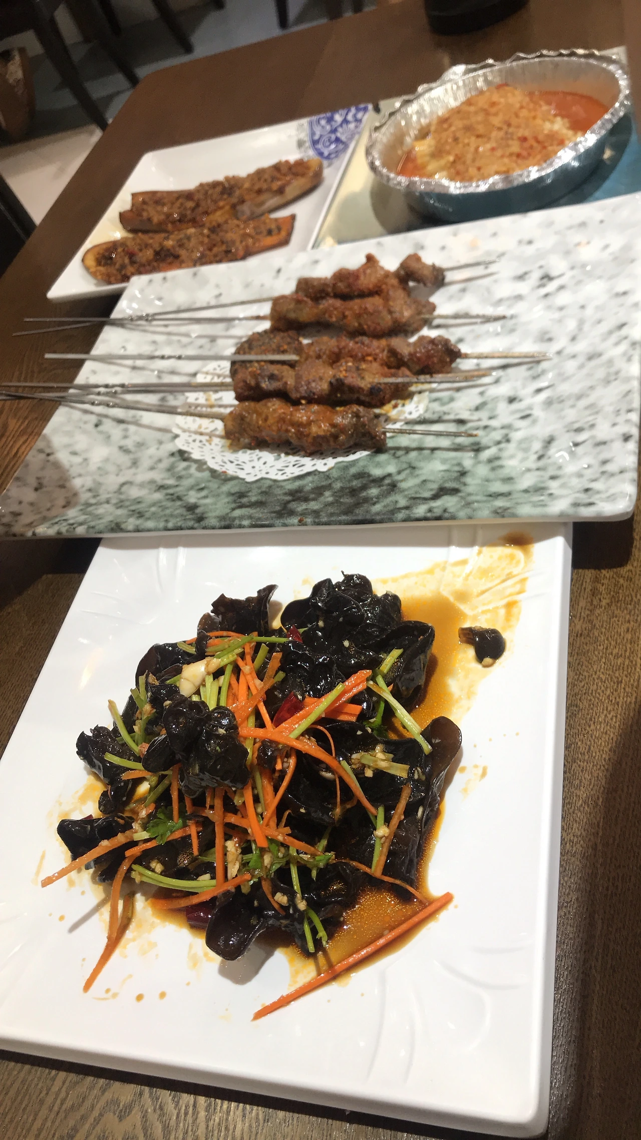 그렇게 시작된 주문. 우리는 광기 어린 눈으로 메뉴판을 뚫었고 3명이서 10개 정도의 요리를 시켰습니다. 오늘은 배를 열고 먹어야겠다 싶더라고요. 평소에 잘 들어오지도 않던 중국어가 왜 이리 쏙쏙 눈에 들어오는지. 옛날 옛적 북경에서 주문을 하는 것처럼 재빠르게 주문을 하였습니다. 다행히 모두가 레깅스를 입고 있어서 배는 무한정으로 늘어날 수 있었어요.