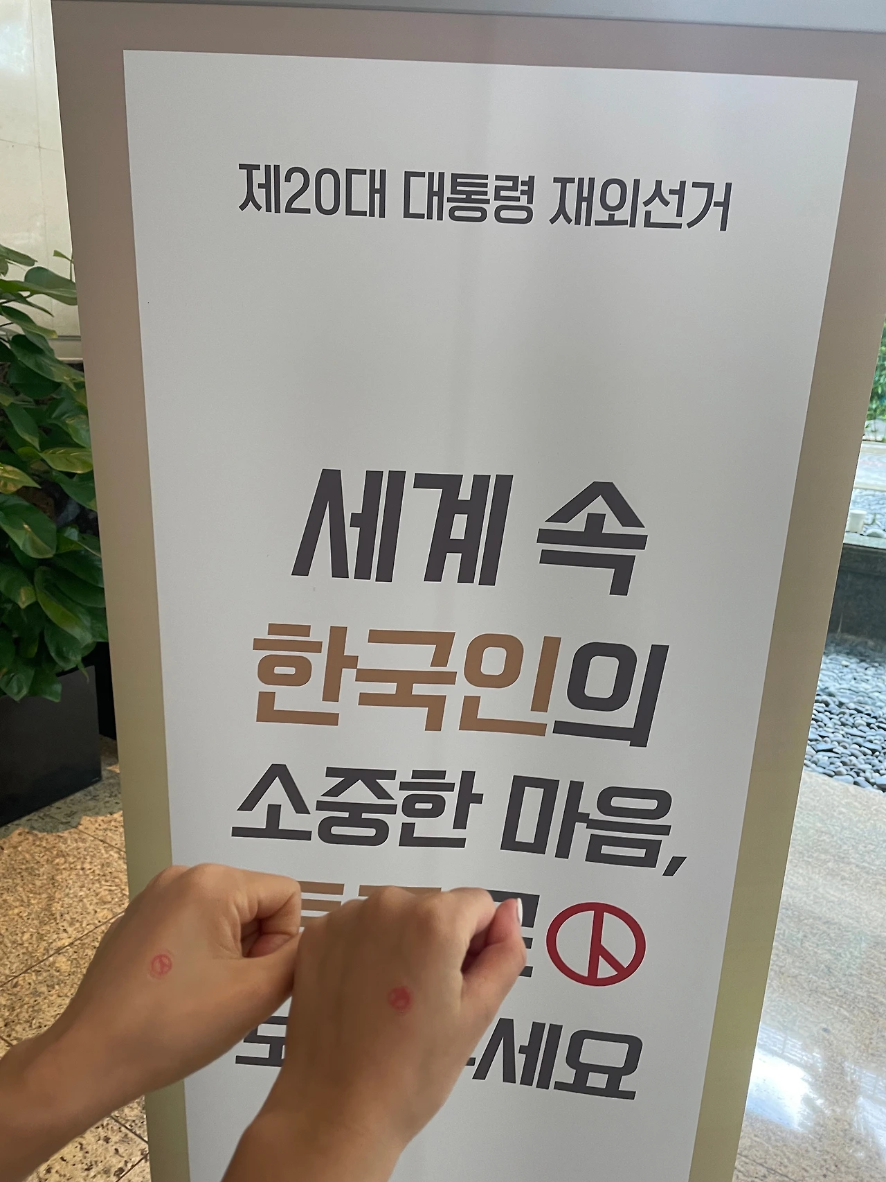 사진 촬영은 금지였기 때문에 얼른 투표하고 돌아 나와서 입구에서 살포시 사진을 찍습니다. 누구를 찍었는지는 물어보지 않는 것이 불문율. 우리는 함께 투표를 하였지만 정당과 후보인 관련된 이야기는 일절 하지 않았습니다.