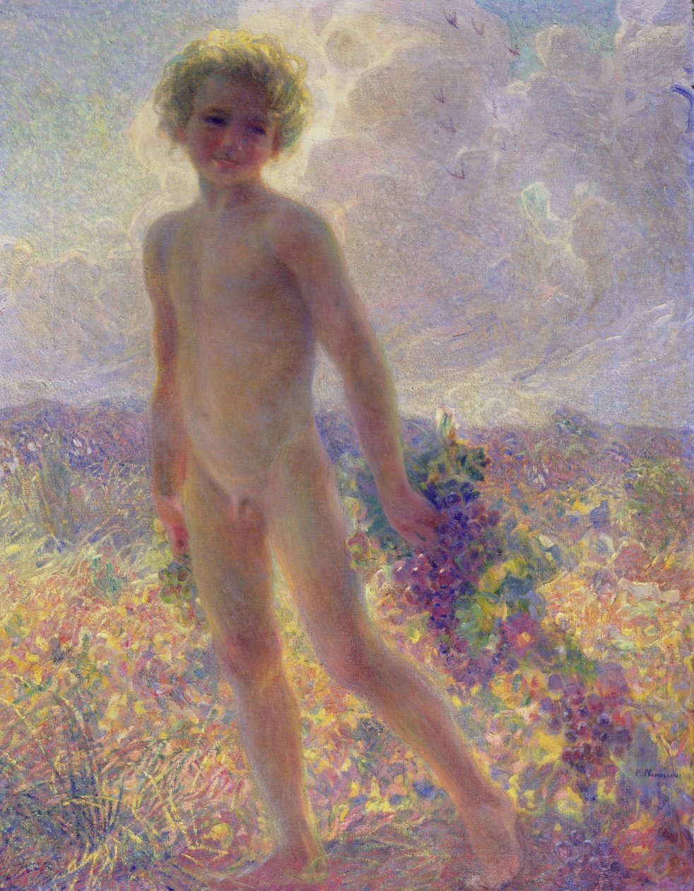 이탈리아 미술의 빛나는 별, 플리니오 노멜리니(Plinio Nomellini, 1866-1943)의 <첫 독서(Early Reading)><Kisses of the Sun, 1908>, <Young Bacchus, 1910> 작품 가져와 봤습니다.