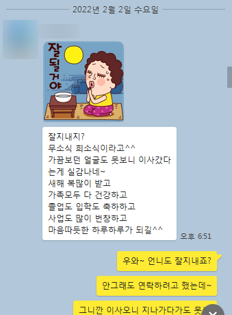 무소식이 희소식이라고 잘 지내고 있냐고 새해 복 많이 받으라는 안부 메시지였다.